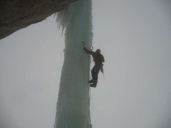 Klaus auf der etwas morschen Eissäule am Wasserfallweg