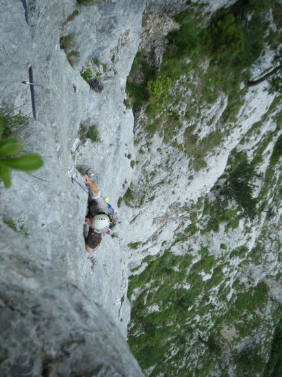Luis Trenker in der steilen Ausstiegslaenge