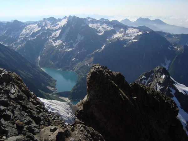 Ausblick vom SO- Grat zum Stausee beim Rif. Curo