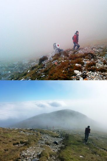der Nebel reichte weit hinauf - am Gipfel tw. Sonnenschein
