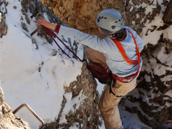 Angela am teils winterlichen Wildenauersteig
