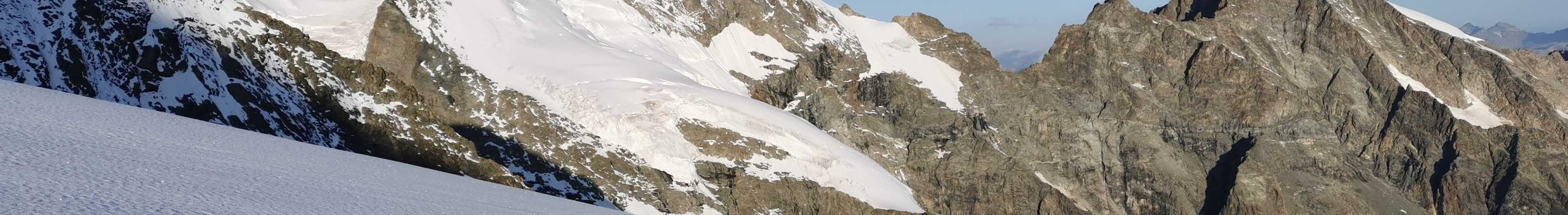 Bellavista, Berninagruppe Langer Abstieg mit fast 2000Hm. hinunter nach Morteratsch. Beeindruckend die Markierungen zu den Gletscherständen heute, 2005, 2000, 1980, 1970 usw.