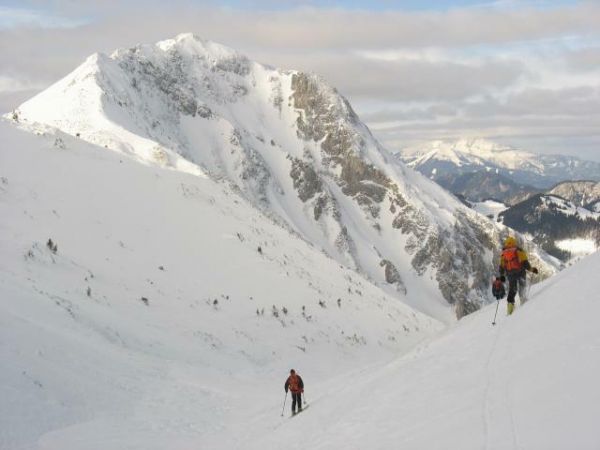 Abfahrt durch die Rodel (Gr. Wildkamm im Hintergrund)