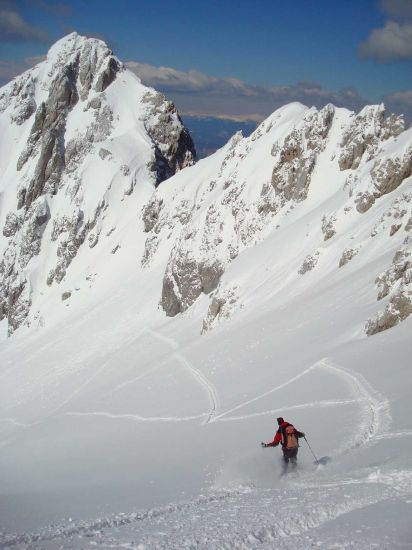 Abfahrt im oberen Teil über herrliche Karhänge