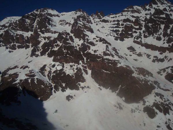 Re. die Aufstiegsrinne, ganz li. der Gipfel
