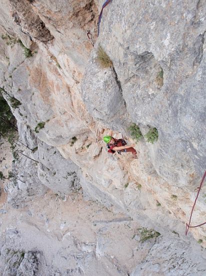 Moni nach dem Quergang in der vorletzten Seillänge