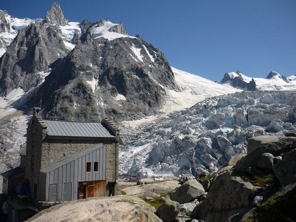 Requin Hütte, li. Dent de Geant , Mer de glace