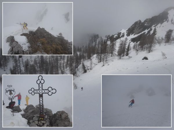 Aufstieg & Abfahrt im Kar, Ausstiegsrinne und Gipfel