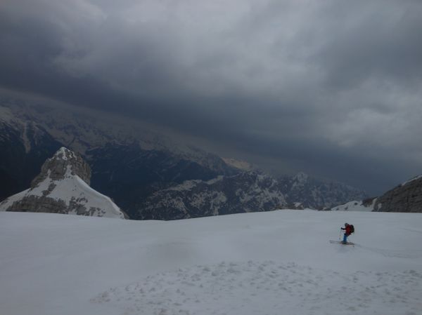 Abfahrt im Mojstrovka- Südkar