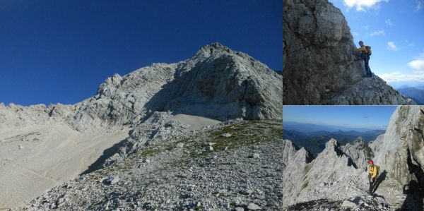 die Route führt Zick- Zack auf Bändern durch die Nordwand