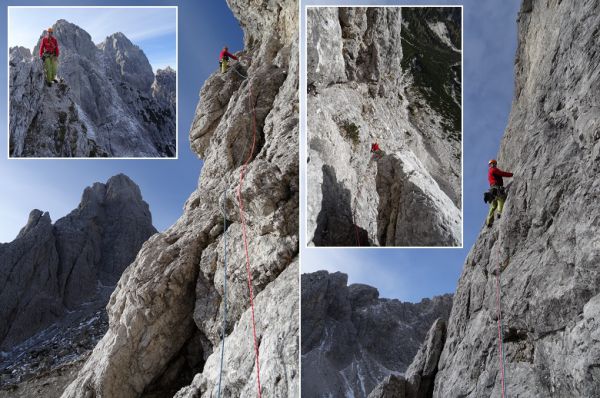 Im steilen Fels der Südwand & am Gipfel (kl.Bild li. oben)